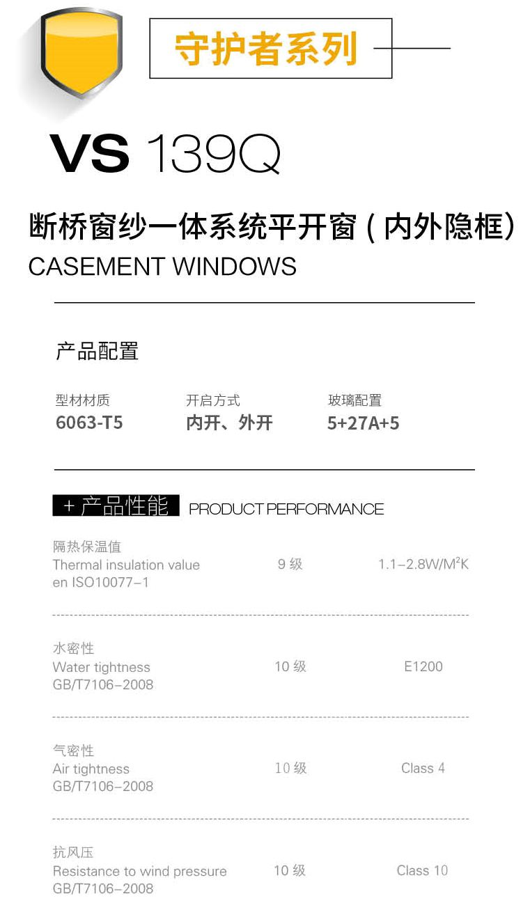 断桥窗纱一体系统平开窗 VS-139Q